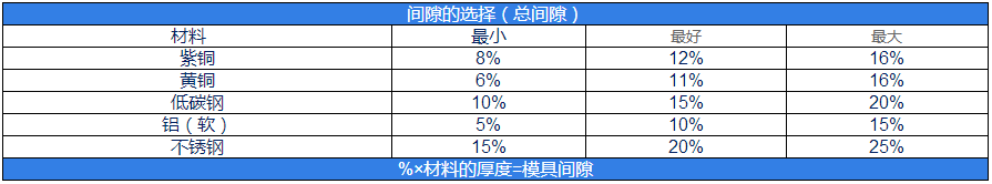 請參照(zhào)下表選擇模具(jù)間隙(表中數據為百分數)